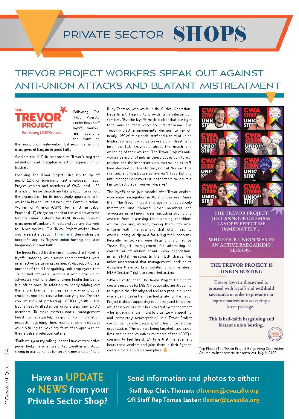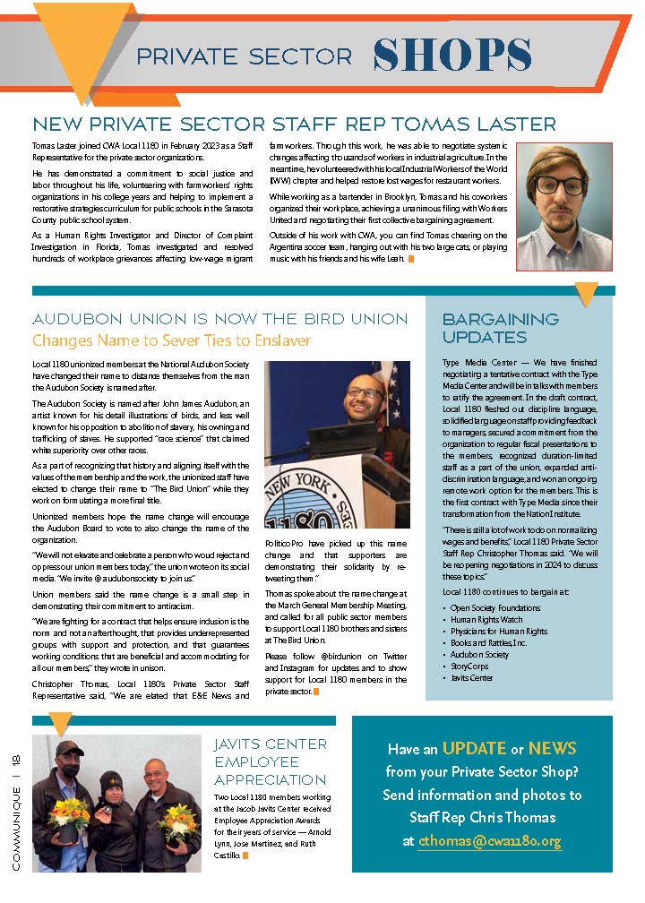 Follow CWA Local 1180 Private Sector Shops